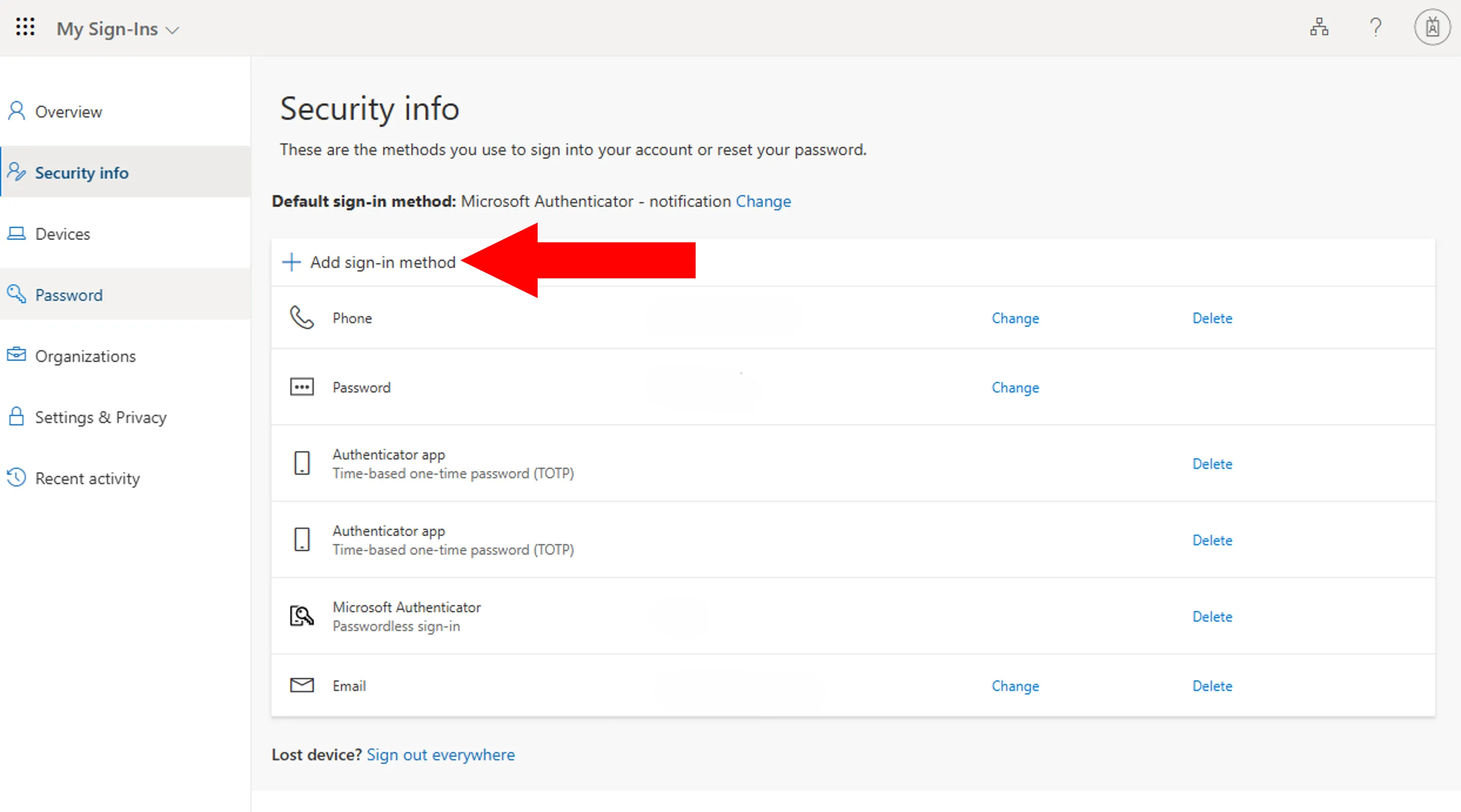 6. If you are then taken to the “Security info” page, you have successfully signed in.