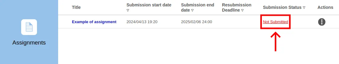 1. Click the “Not Submitted” (or “No Submission Required”) button in the “Submission status” column.